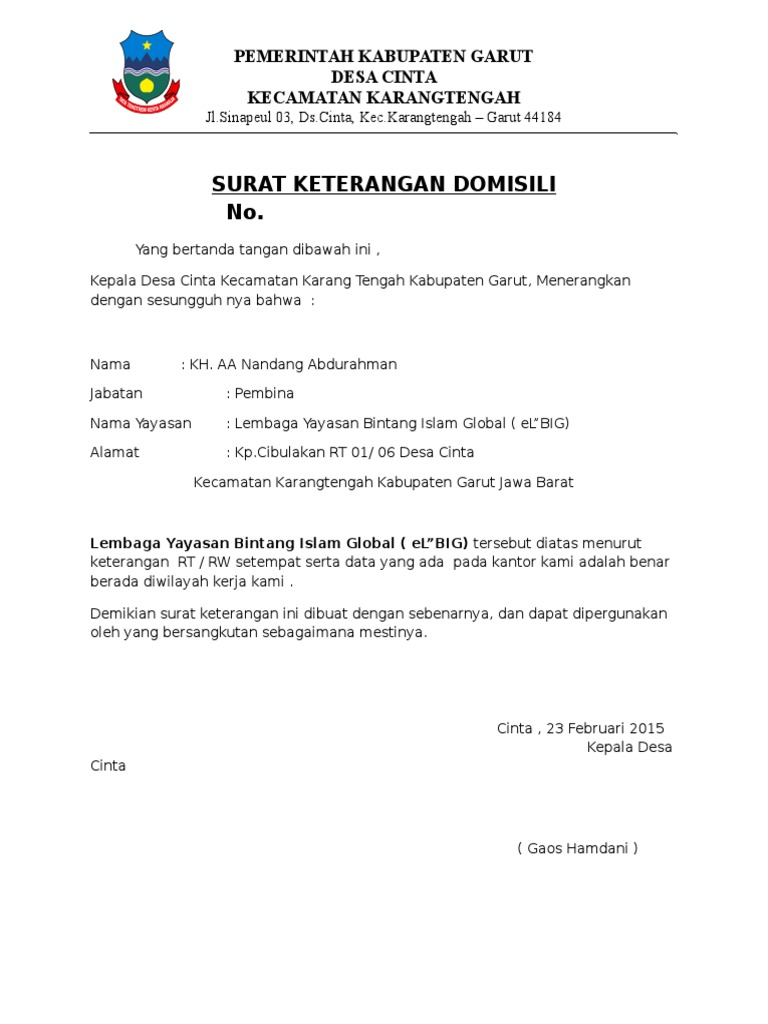 Contoh dan format penulisan surat resmi, surat keterangan domisili yayasan yang diterbitkan oleh kantor kelurahan. Sebenarnya surat domisili dari rt/rw cukup, tapi teman lebih memilih meminta di kantor desa, karena prosesnya lebih mudah baginya. Surat keterangan domisili sendiri adalah sebuah surat yang dibuat dan diterbitkan oleh pejabat berwenang dalam hal ini kepala desa untuk menerangkan status bagi anda yang membutuhkan surat ini caranya sangat mudah anda tinggal mendatangi kantor desa / kelurahan setempat. Channel ini berisi tutorial komputer lengkap, review, unboxingcara membuat contoh surat keterangan domisili yang dikeluarkan desa untuk warganya menyatakan. Contoh surat keterangan domisili warga dari camat atau kepala desa yang resmi dan digunakan untuk keperluan dalam pengurusan dokumen. Contoh format surat keterangan wni terbaru menurut pengalaman, biasanya. Surat keterangan domisili merupakan, surat yang dikeluarkan pejabat yang berwenang untuk menerangkan keberadaan atau tempat tinggal. Skd diperuntukkan bagi seseorang yang tinggal di jakarta, tetapi memiliki ktp ataupun identitas kependudukan dari wilayah lain di luar wilayah. Domisili merupakan istilah untuk seseorang menetap disuatu daerah. Biasanya anda harus antri beberapa saat hingga. Download contoh surat keterangan domisili tpq dari kelurahan atau desa. Demikian kami sampaikan surat keterangan domisili perusahaan ini, sebagai salah satu persyaratan pembukaan rekening bank untuk perusahaan yang bersangkutan, serta membuat npwp untuk perusahaan tersebut. Dalam hal ini yang menjadi pihak berwenang adalah kepala desa atau kantor kelurahan.