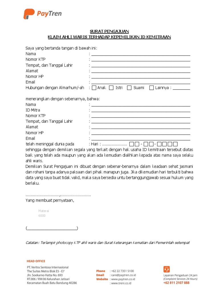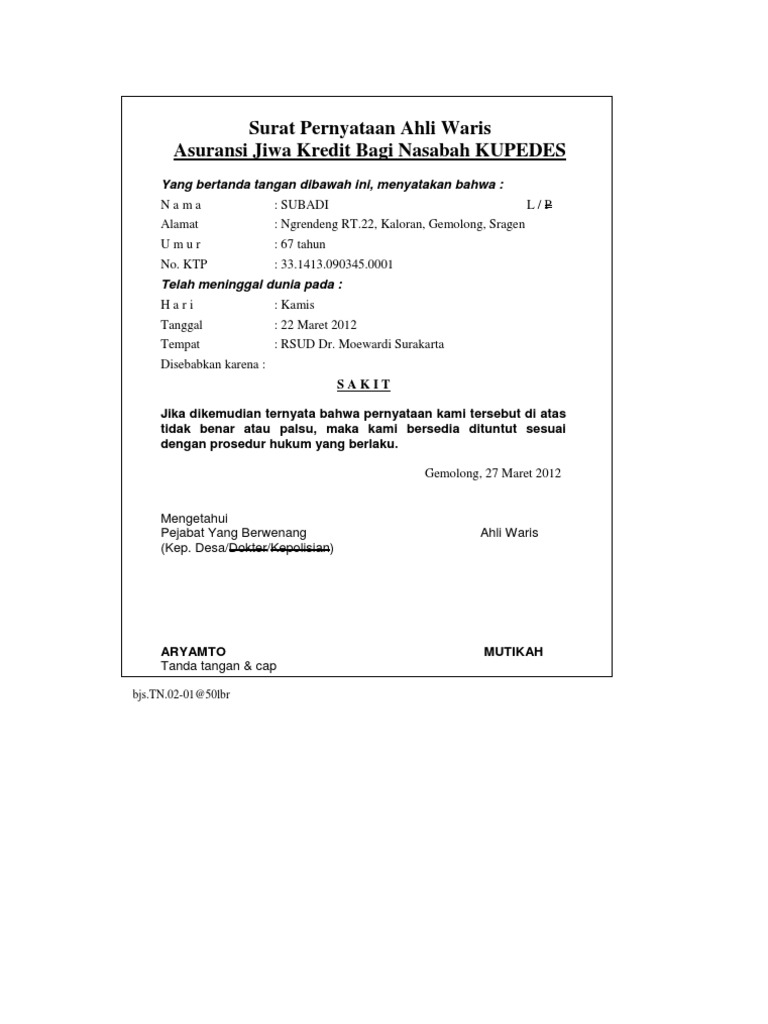 Formulir Surat Kuasa Ahli Waris Taspen Suratmenyurat Net Cute766 from i0.wp.com Admin dari blog kumpulan contoh surat 2019 juga mengumpulkan … Contoh surat keterangan ahli waris untuk asuransi mp3 & mp4. Artinya bahwa bukan sekedar pengakuan dari penerima warisan … Inilah pembahasan lengkap terkait contoh surat kuasa penunjukan ahli waris asuransi. Contoh surat keterangan ahli waris dari lurah / kepala desa. 20+ contoh surat keterangan ahli waris terlengkap. Surat ini bisa digunakan untuk mengurus warisan Contoh surat kuasa waris dawn hullender.